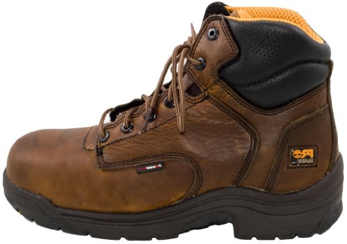 Our Timberland PROTM TiTANTM collection meets or exceeds ASTM standards and is designed for hard working service professionals. Providing lightweight, durable protection for a wide variety of uses, the TiTANTM workboot brings together the TiTANTM safety toe, the PowerFitTM comfort system and a breathable, moisture-wicking air mesh lining. It's no surprise that it's become one of our most popular and versatile collections. 6" Soft Leathers to Minimize Break-In Time Moisture-Channeling Spacer Mesh Comfort Lining with Internal Anti-Microbial Treatment Keeps Feet Dry and ComfortableNon-Metallic Hardware 360 Degrees of Lightweight Comfort Polyurethane Midsole Provides Lightweight, Durable Cushioning Contoured OrtholiteTM Footbed with DryzTM IntellitempTM X-StaticTM Combined Technology Provides Superior Moisture Management, Temperature Regulation and Silver-Fiber-Based Anti-Microbial ProtectionPowerFitTM Comfort System Uses a Combination of Ergonomically Designed Elements at Key Zones to Supply Movement and Provide Critical Support Timberland ProTM Rubber Outsole: Low-Profile, Slip-Resistant, Oil-Resistant, Abrasion-Resistant Non-Metallic TitanTM Composite Toe Rated ASTM F2412-05, F2413-05, I75 for Lightweight Protection and a Roomy FitElectrical Hazard50508 Timberland PRO Men's TiTAN Safety Boots - Dark Brown