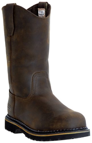 11" Full Grain Leather WellingtonMoisture Wicking Nylon Lining12mm Thick Polyurethane Padded Insole with Moisture Wicking Cover PVC Storm Welt Which Wraps up on the Upper to Help Keep out MoistureGoodyear Welt Construction Tempered Steel ShankHigh Abrasion, Oil, Heat and Slip Resistant Rubber Outsole Steel Toe Rated ASTM F2413-05 M I/75 C/75 Electrical HazardMR85344 McRae Men's Industrial Safety Boots - Dark Brown
