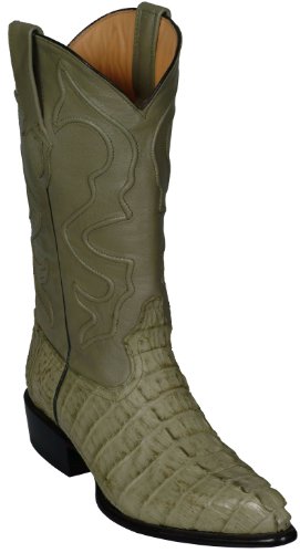 These Cowboy Boots look great with their inlay-ed shaft, Semi-round toe and Walking heel. Fully hand crafted. Features Genuine Caiman Tail Alligator Vamp & Leather uppers. Color: Military Green