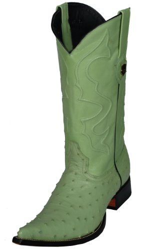 These Cowboy Boots look great with their inlay-ed shaft, Semi-round toe and Walking heel. Fully hand crafted. Features Full Quill Ostrich Vamp & Leather uppers.
