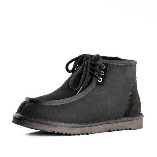 Aukoala Australia The Sparta Sheepskin Rubber Sole Eyelets Laces Man Snow Boots, Black ,Size 11