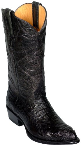 These Cowboy Boots look great with their inlay-ed shaft, Semi-round toe and Walking heel. Fully hand crafted. Features Genuine Caiman Hornback Vamp & Leather uppers. Color: Black